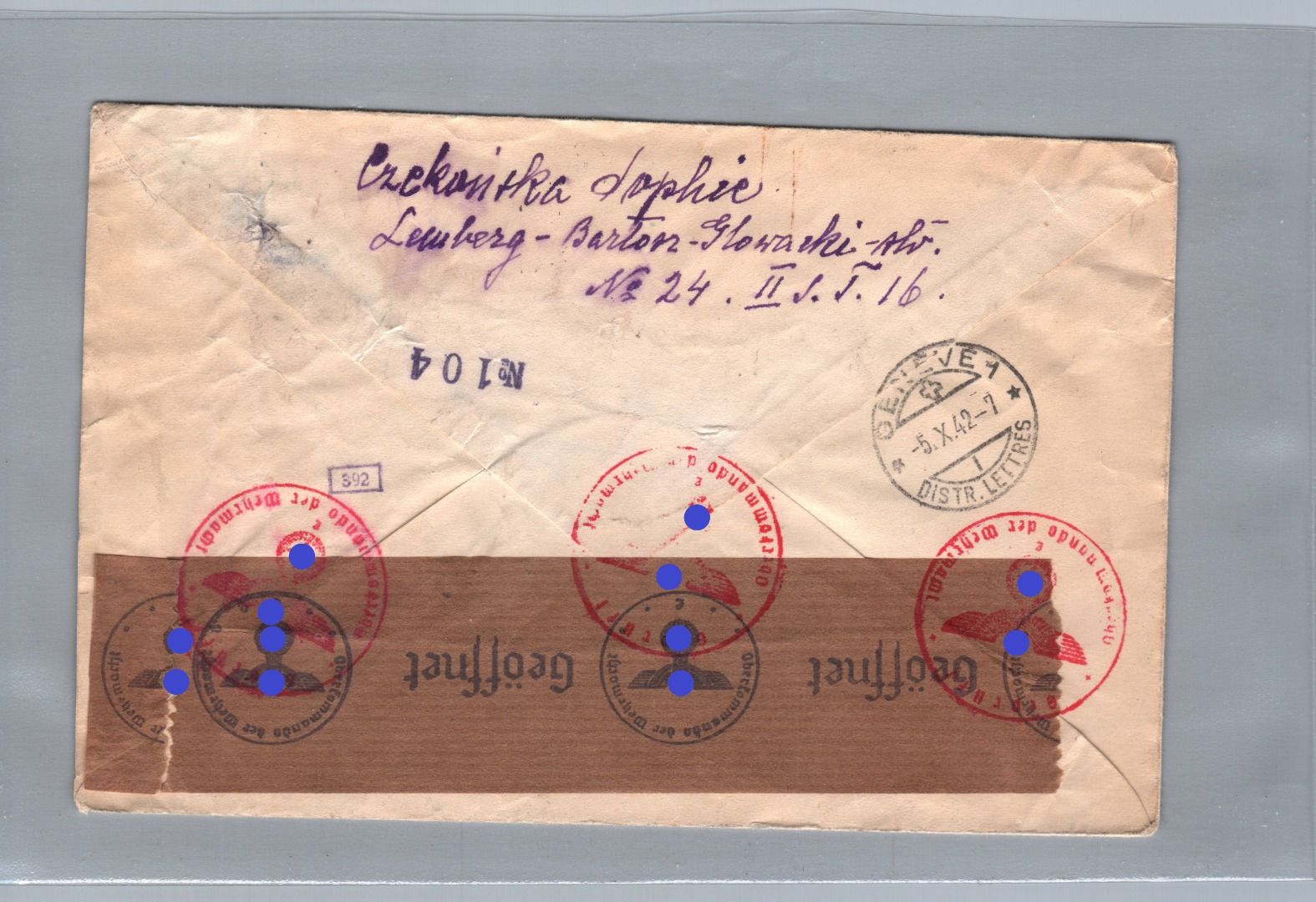 Generalgouvernement MiFr Einschreiben Lemberg nach Genf Schweiz 1942 + Zensur