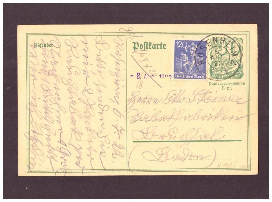 Infla Ganzsache P 140 / MF - Tabakfabrik - Rosenheim n. Bruchsal - 1922