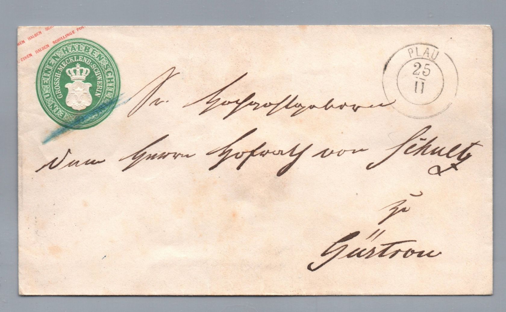 Mecklenburg-Schwerin Ganzsache U6 Plau nach Güstrow