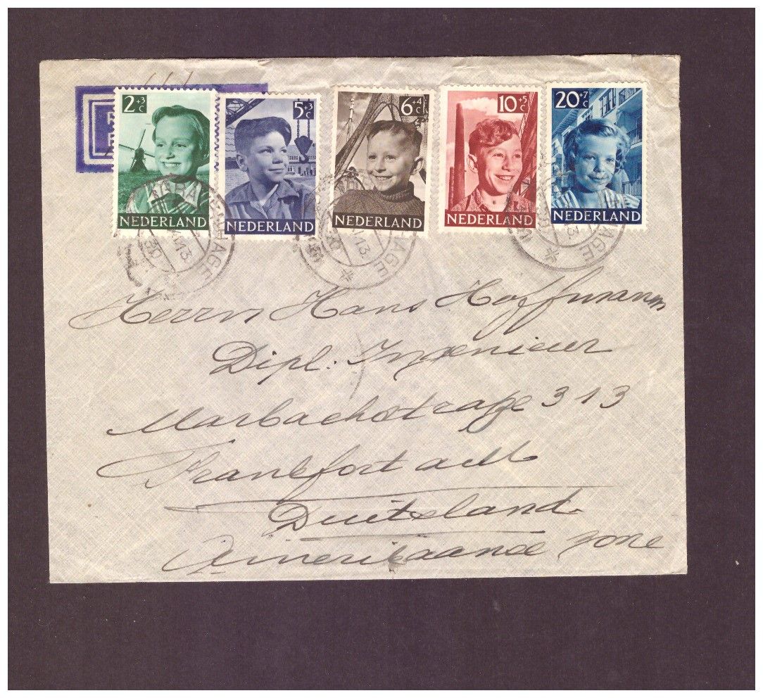 Niederlande Luftpost - Gravenhagen / Den Haag nach Deutschland nach Frankfurt a. M. - in die "Amerikanische Zone"