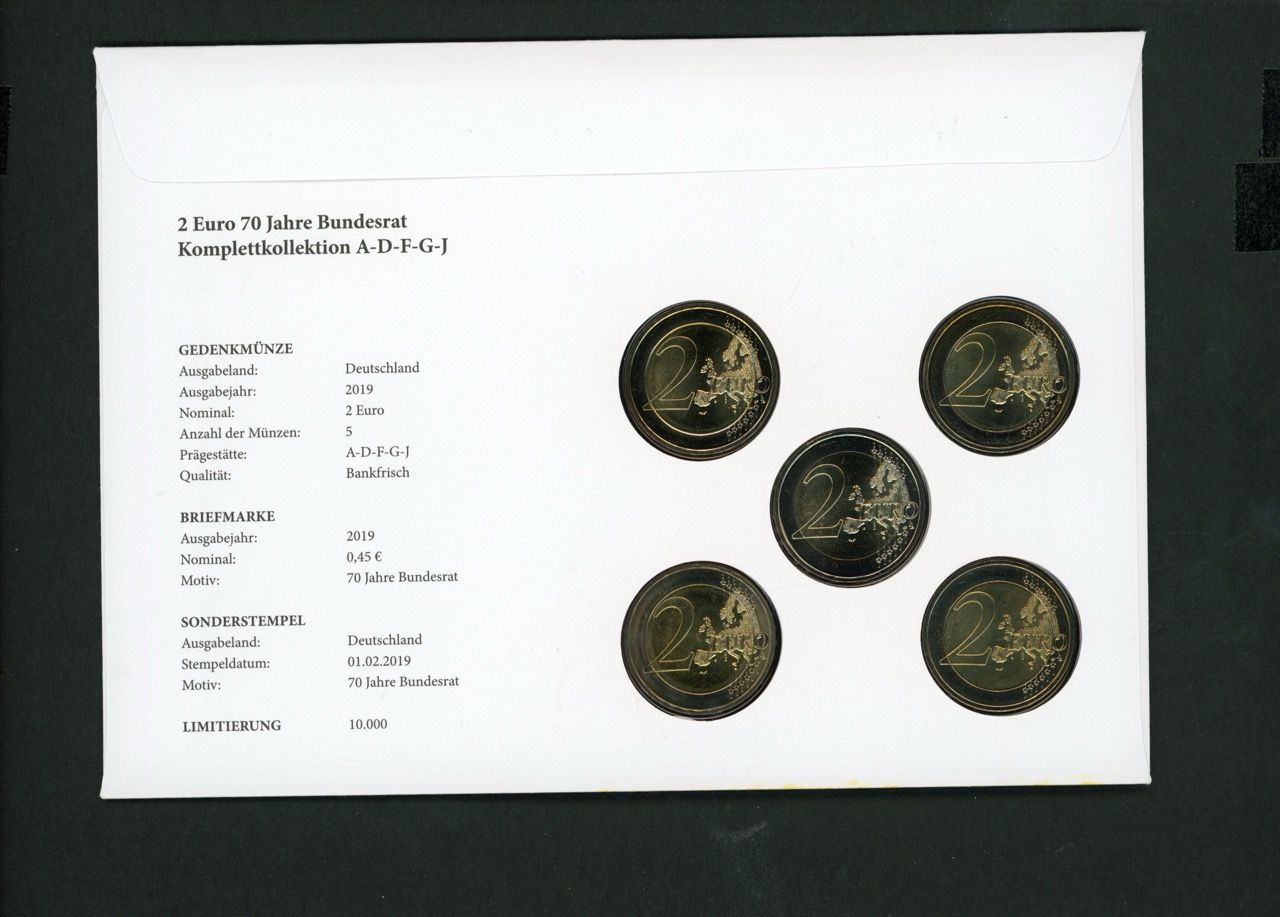 Numisbrief 70 Jahre Bundesrat mit 5x 2 EUR Gedenkmünze