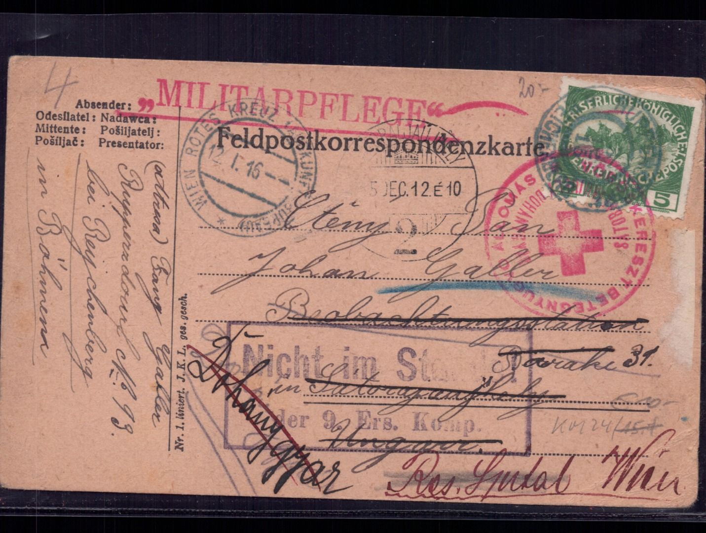 Österreich Feldpost Korrespondenzkarte - Retour - Rotes Kreuz - Wien 1916