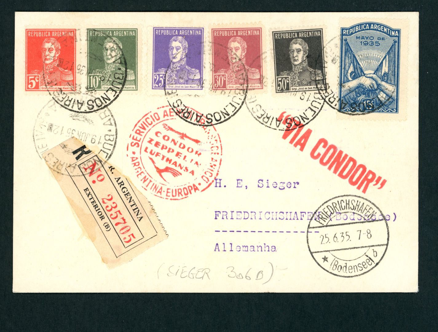 Zeppelin Beleg Einschreiben Argentinien - Friedrichshafen 1935