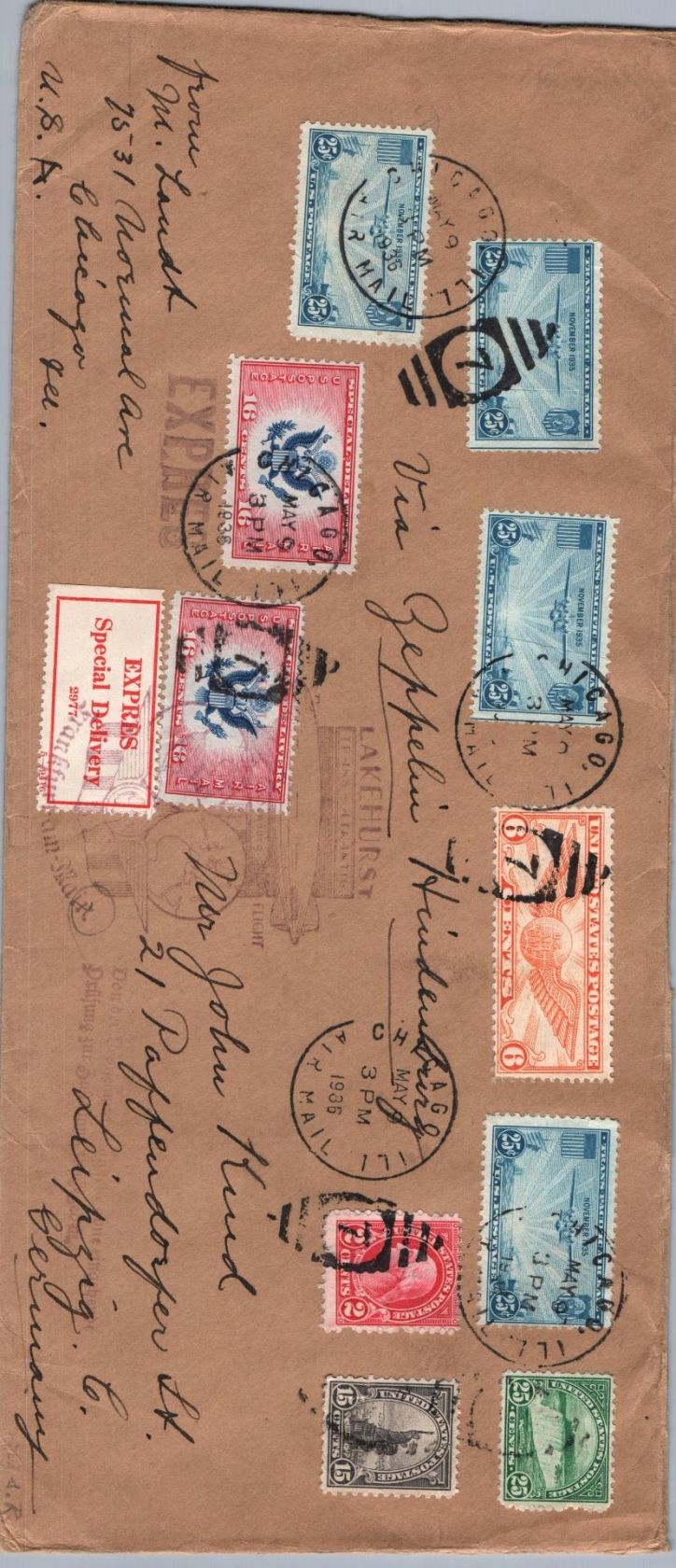 Zeppelin Beleg USA Express Special Delivery - Chicago via Leipzig nach Leipzig 1936