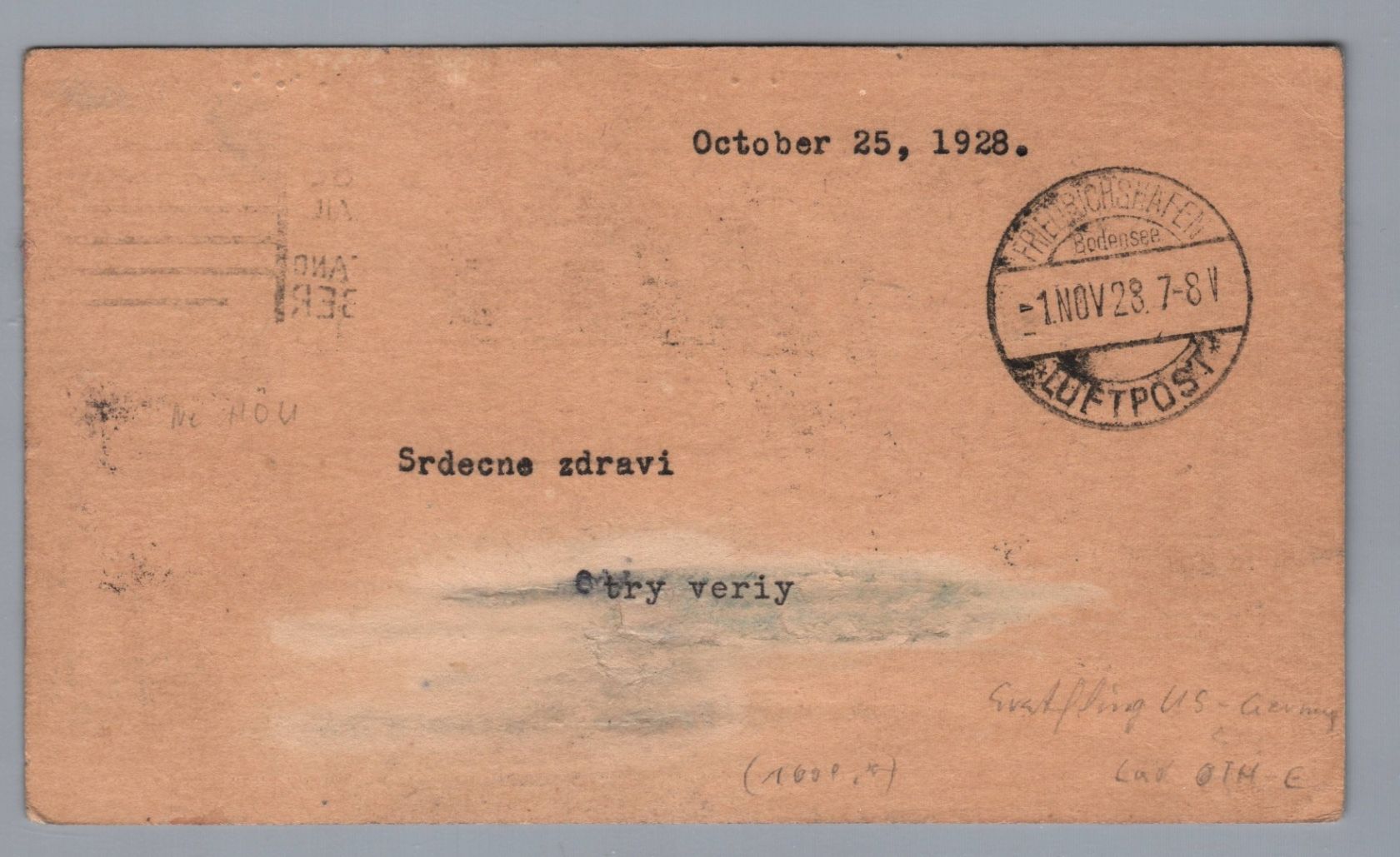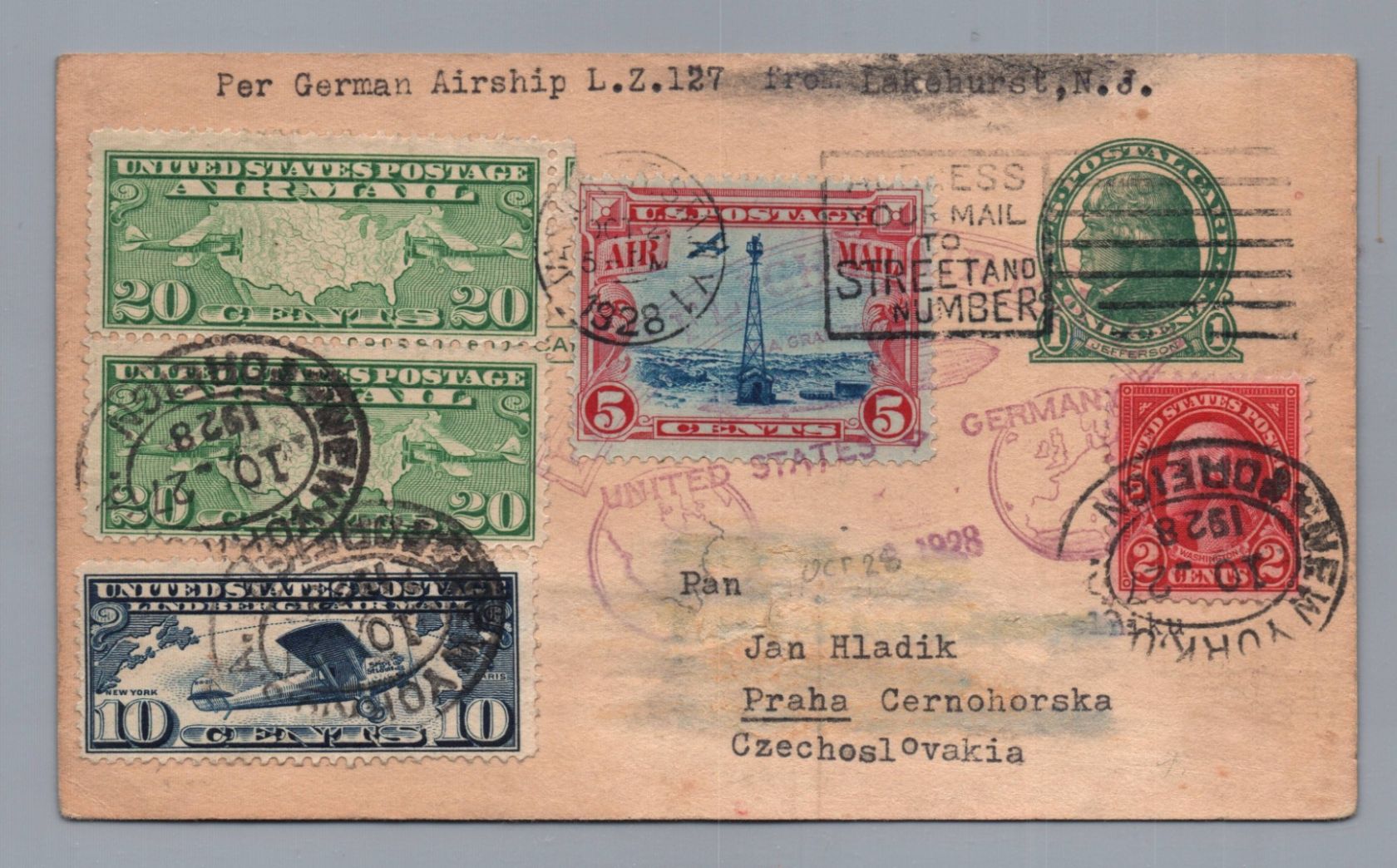 Zeppelin Beleg USA Erstflug First Flight Airmail 1928 - New York nach Prag