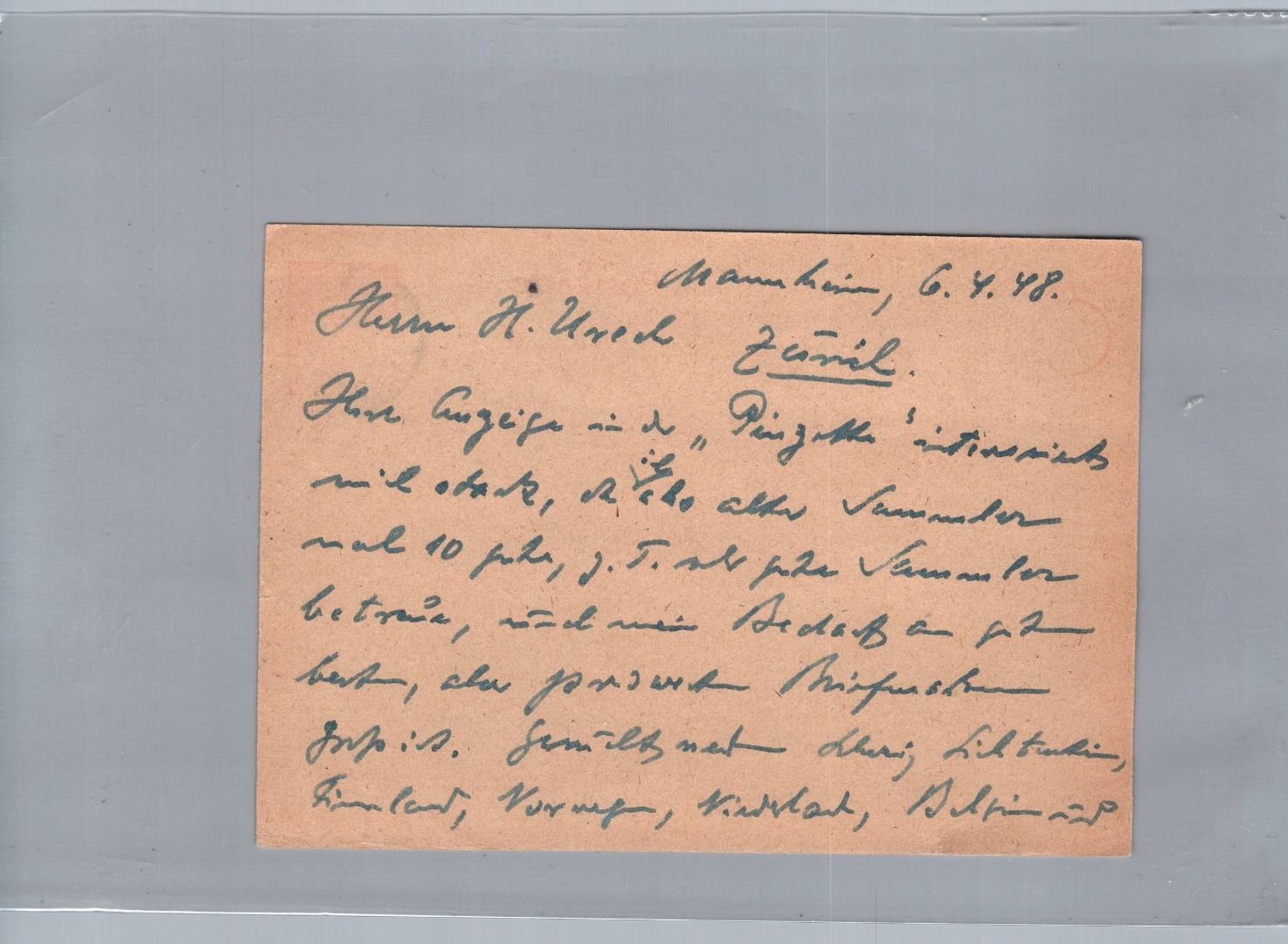 Ganzsache Alliierte Besetzung 45 Pf. Ziffer - Mannheim nach Zürich Schweiz 1948