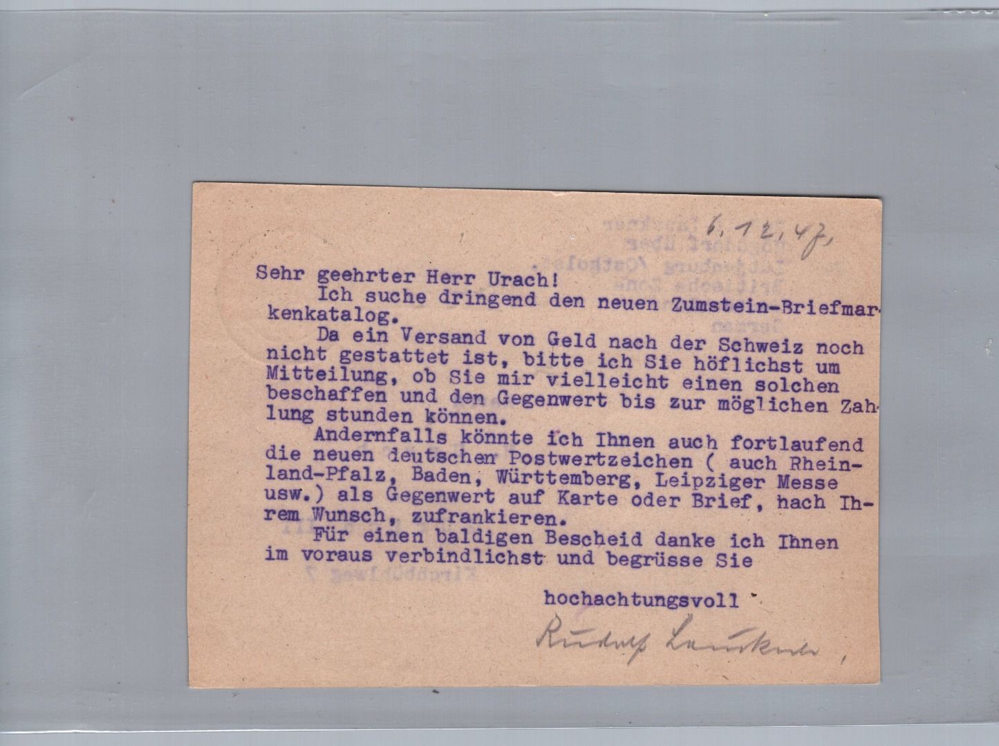 Ganzsache 45 Pf. Ziffer Alliierte Besetzung Gemeinschaftsausgabe Minden nach Zürich Schweiz 1947