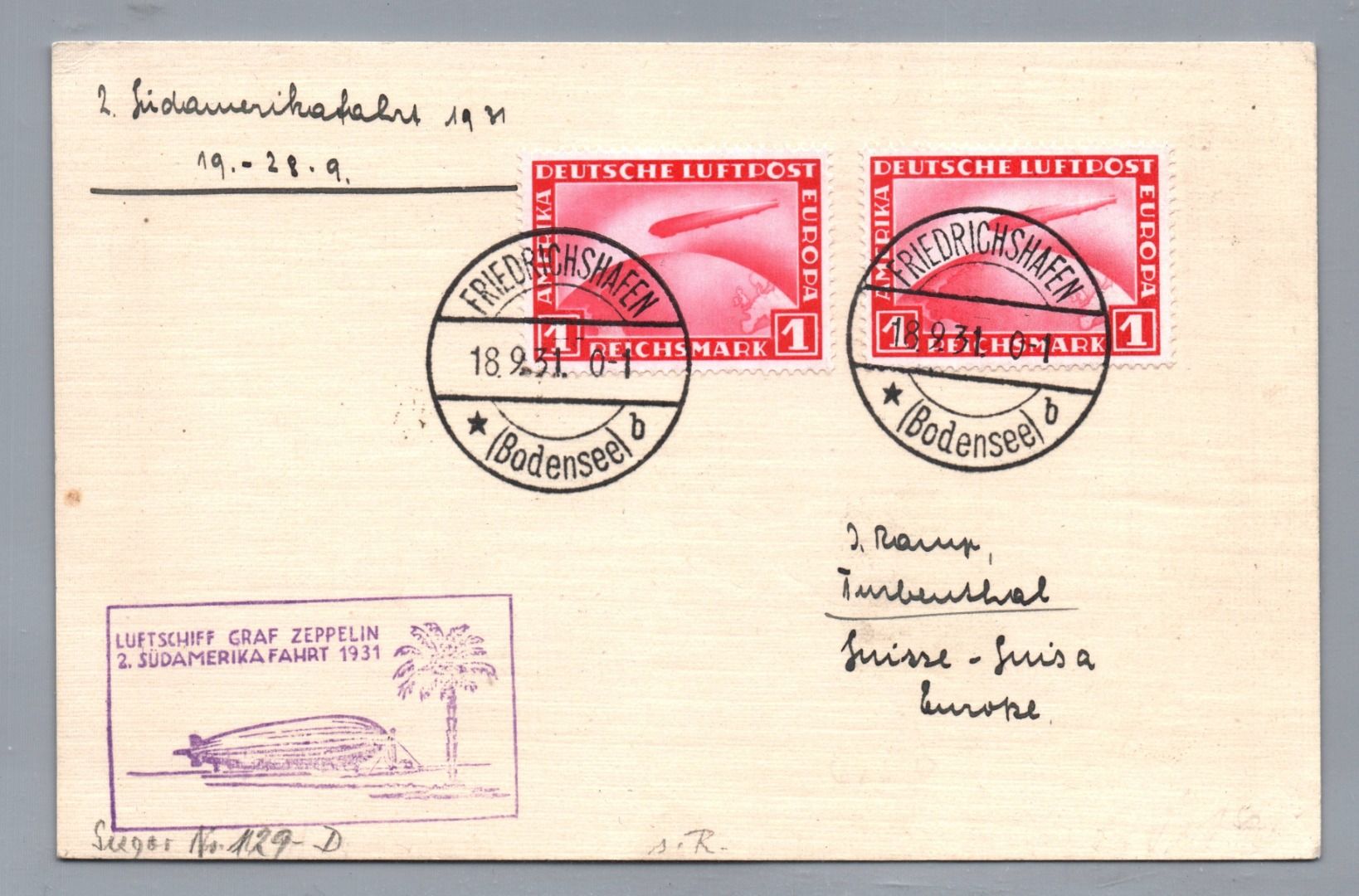 Graf Zeppelin Beleg 2. Südamerikafahrt 1931 - Mehrfachfrankatur in die Schweiz
