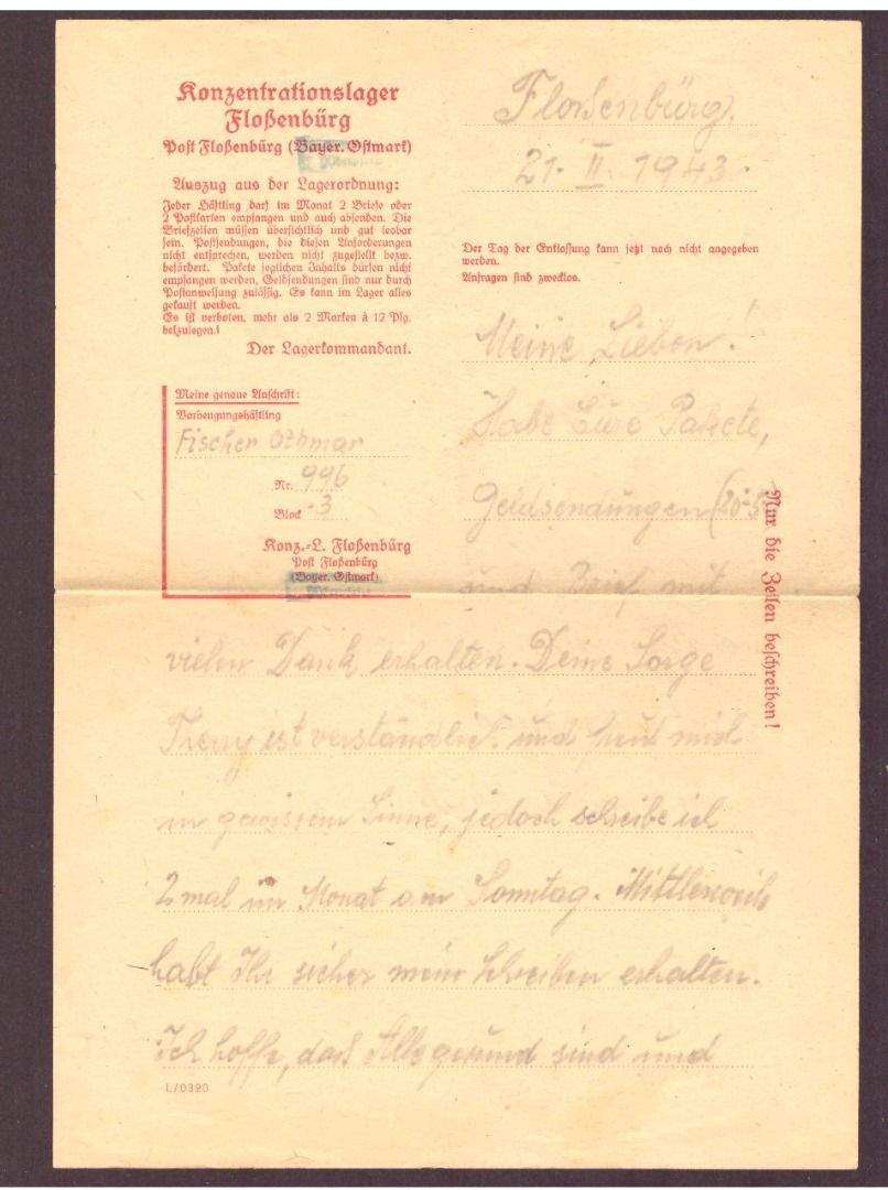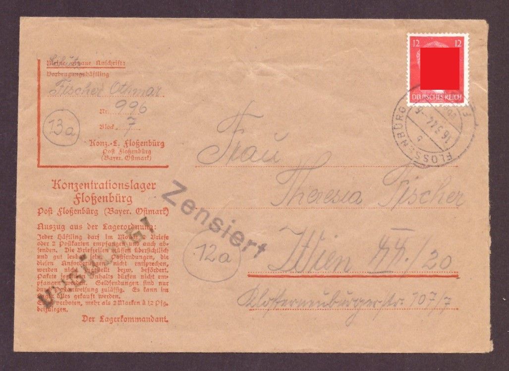 Lagerpost KZ Flossenbürg Vordruckbrief mit Vordruckbriefbogen mit Zensur - Stempel 1944