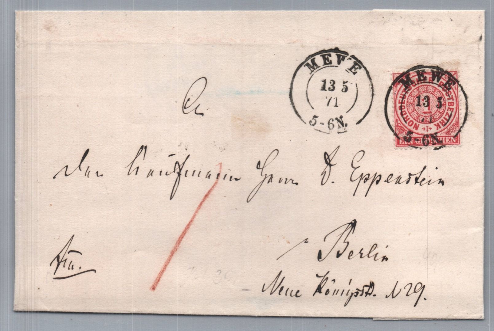 Norddeutscher Bund Brief Mewe nach Berlin mit Inhalt 1871