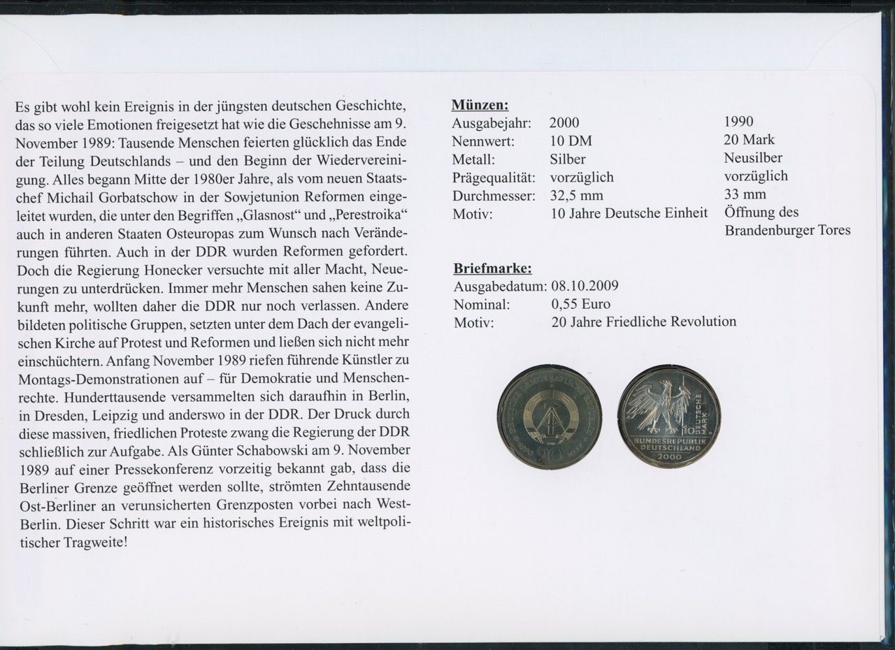 Numisbrief 20 Jahre Friedliche Revolution 2009, 10 DM Deutschland + 20 Mark DDR