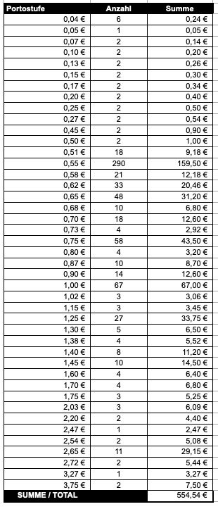 Österreich gültige Frankaturware nach Wertstufen sortiert - Frankaturwert 554,54 EUR