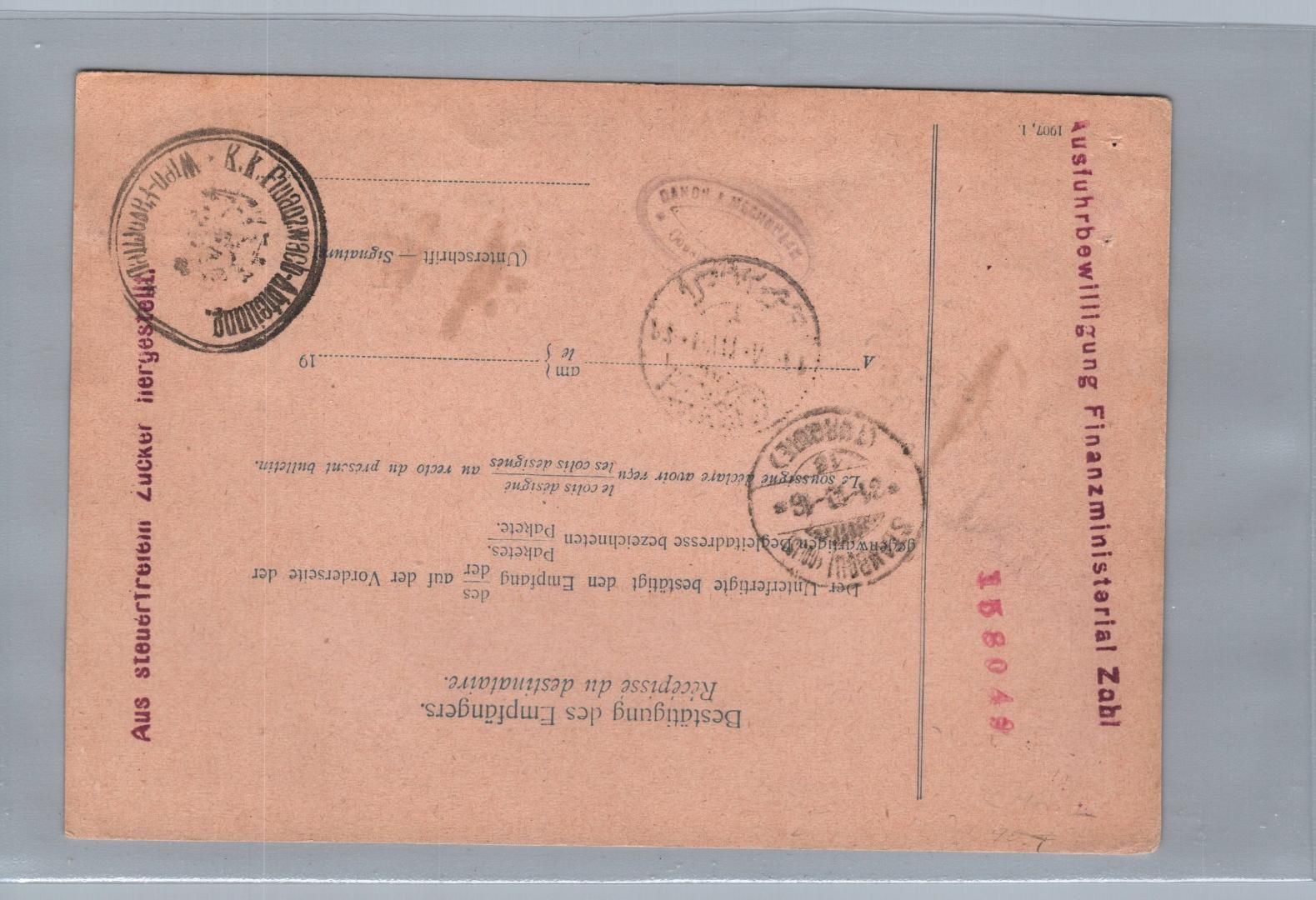 Österreich MiFr Paketkarte Wien nach Konstantinopel 1916