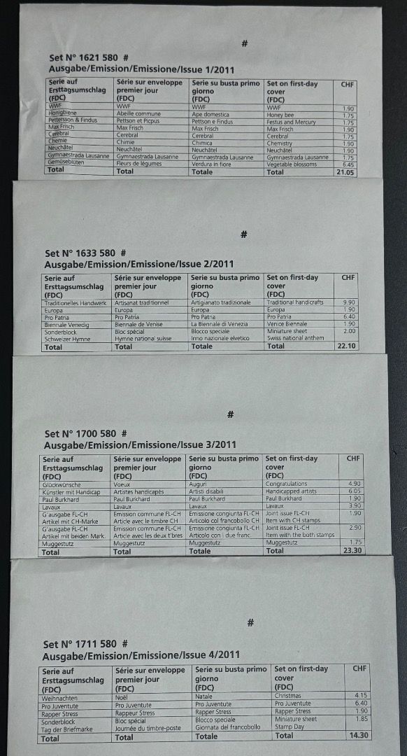 Schweiz Ersttagsbriefe FDC Jahrgang 2011 komplett