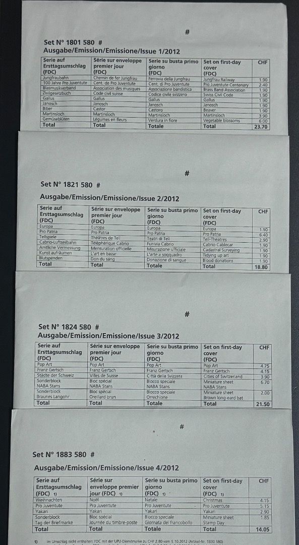 Schweiz Ersttagsbriefe FDC Jahrgang 2012 komplett