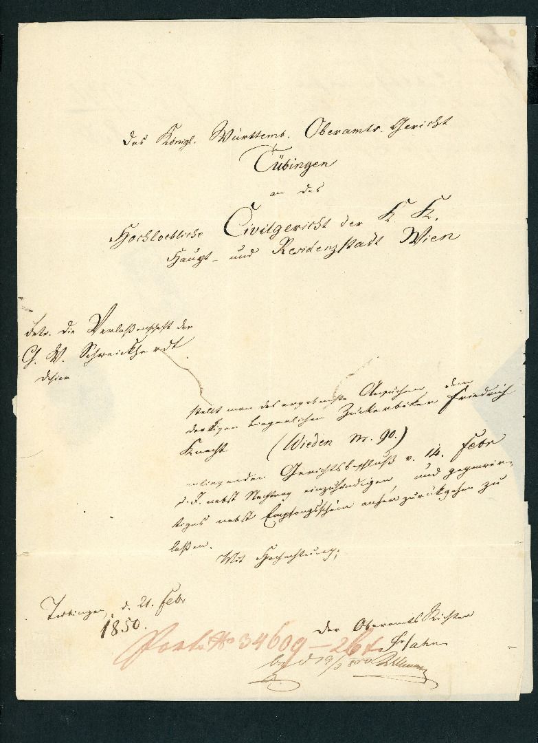 Vorphila Brief Tübingen 1850 nach Wien