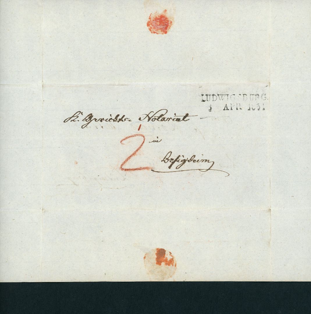 Vorphila Briefhülle Besigheim - Ludwigburg 1831
