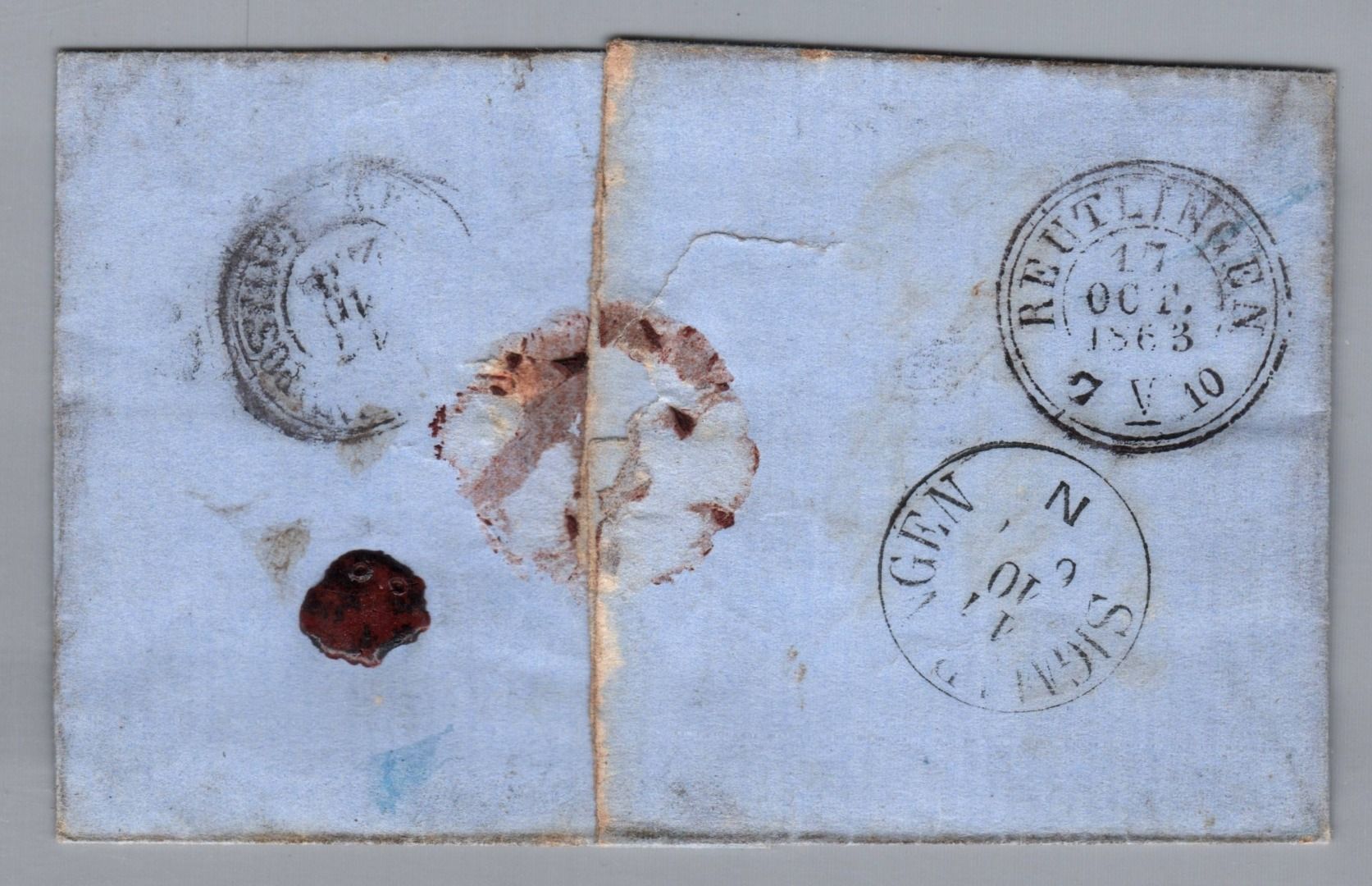Württemberg Brief MiNr 26 - Esslingen über Reutlingen nach Sigmaringen 1863