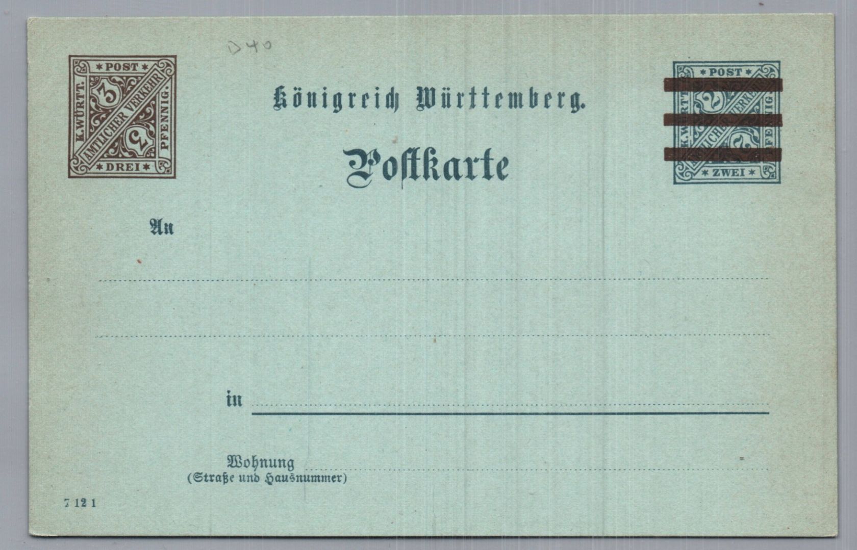 Württemberg Ganzsache D40 - 7 12 1 - ungebraucht