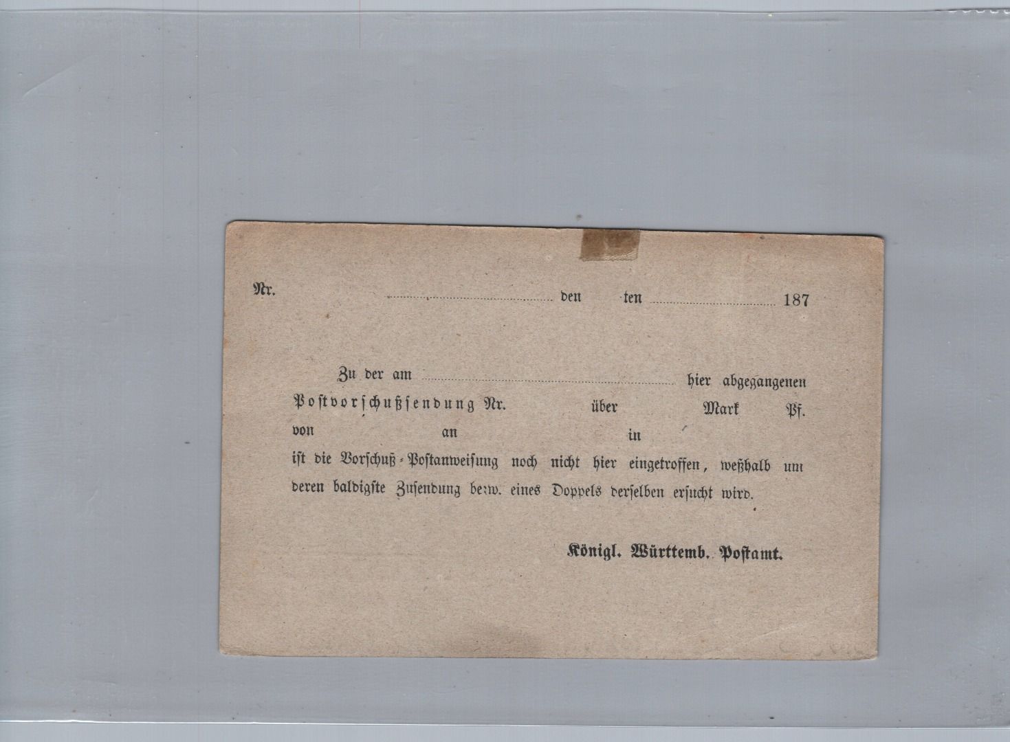Württemberg Ganzsache - Formularaufbrauch - ungebraucht - nach 187[0]