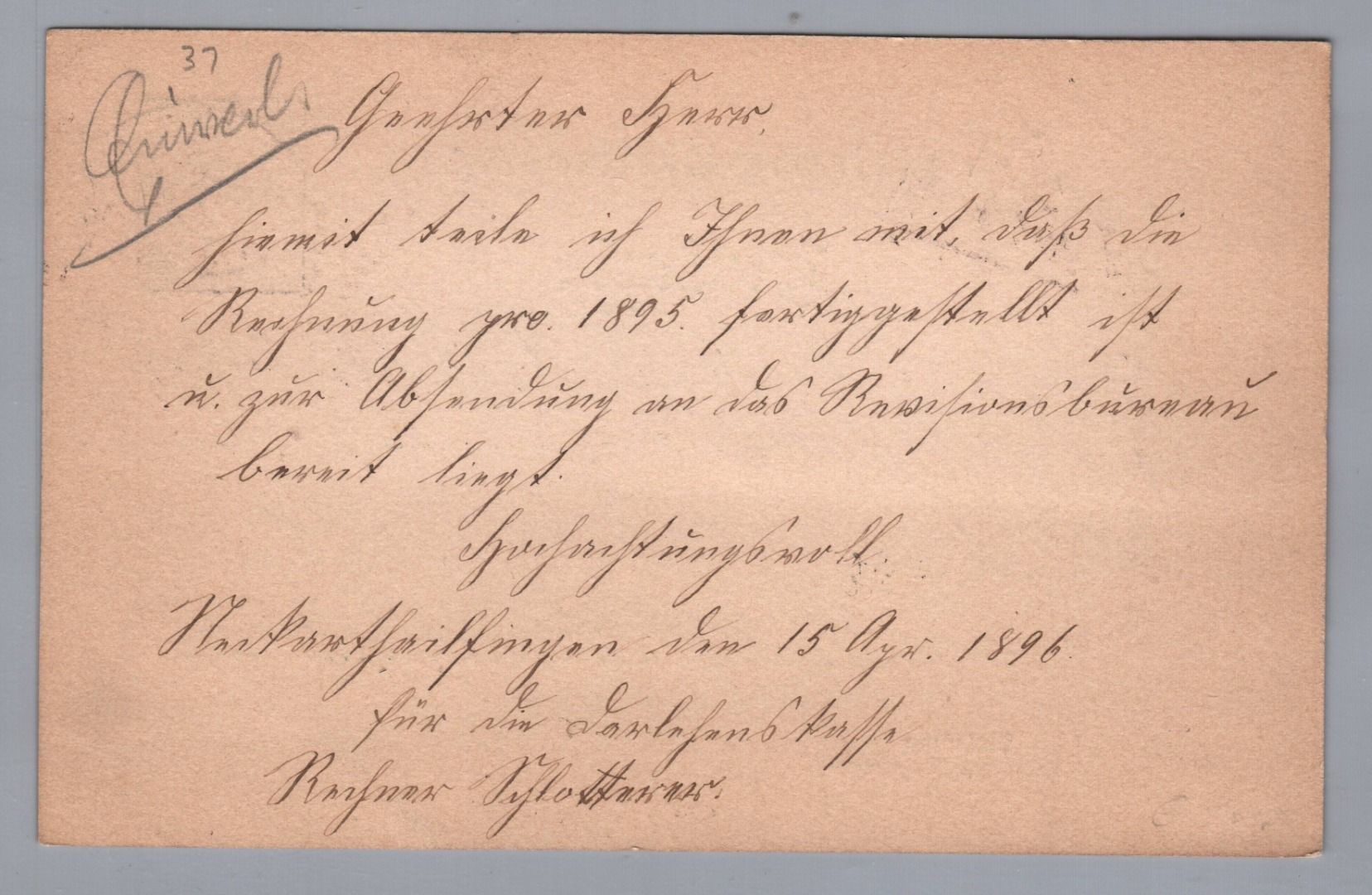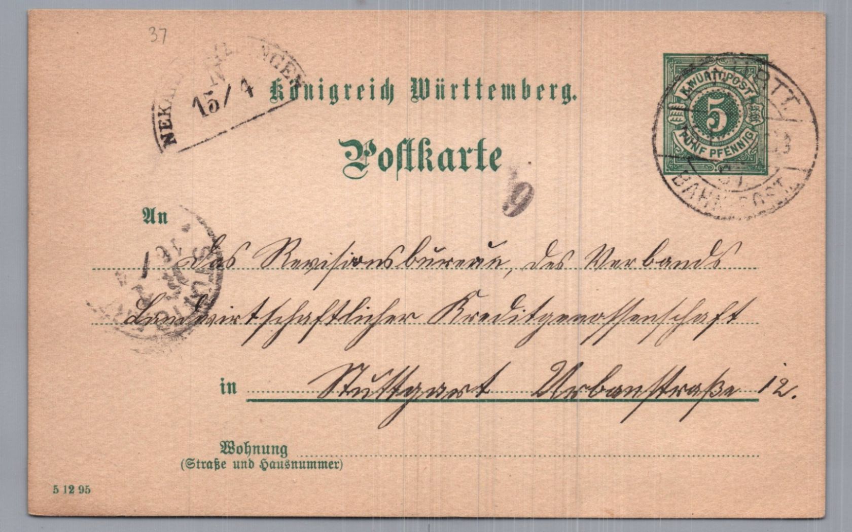 Württemberg Ganzsache - Halbkreis Stempel Neckartailfingen nach Stuttgart 1896